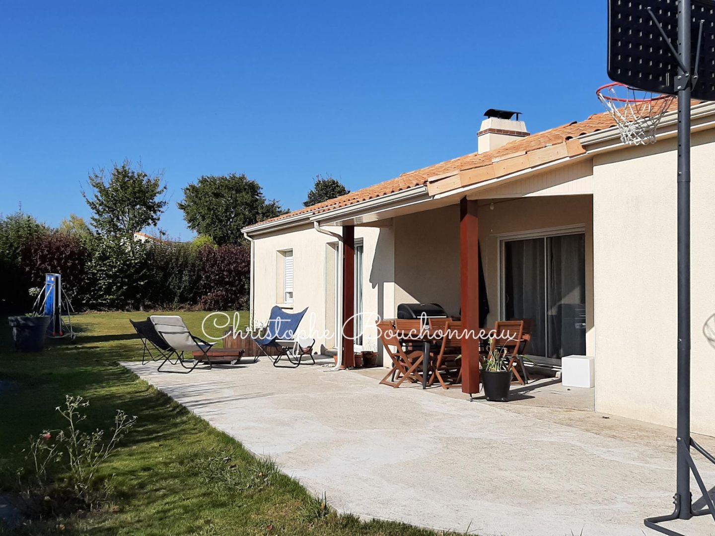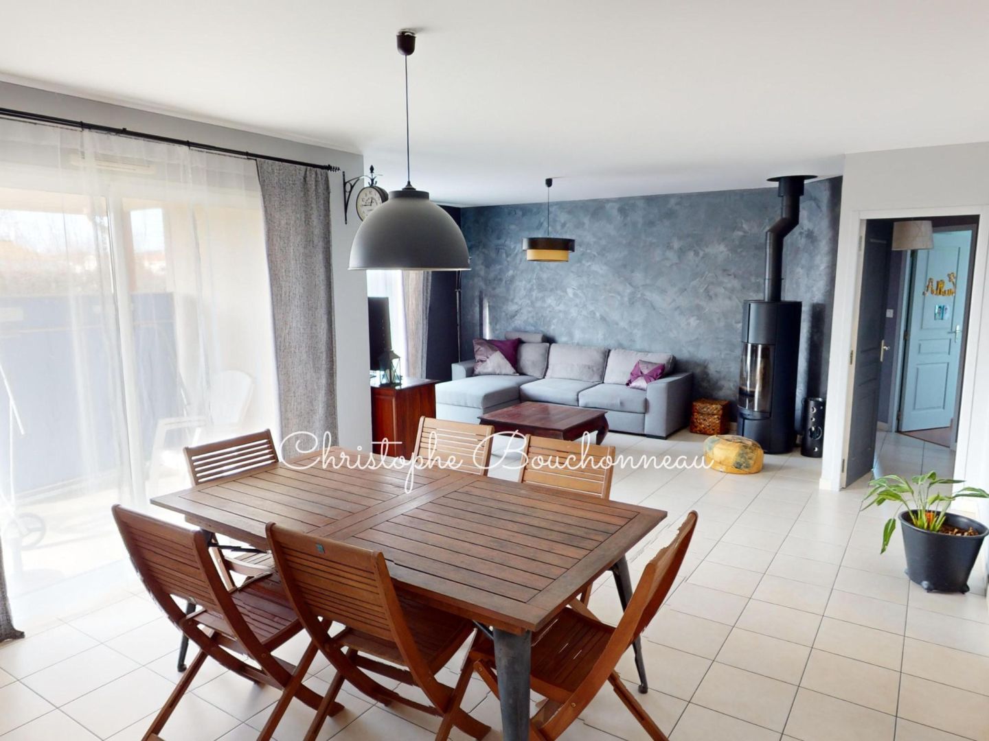 Jolie pavillon de plain pied dans un quartier calme et entièrement décoré avec goût aux normes RT 2005 situé sur la commune de La Plaine avec ses commerces : boulangerie-supérette, garage automobile, coiffeur, fleuriste. La pièce de vie de plus de 45m² (avec poêle à bois) comprend une belle et grande cuisine ouverte équipée et aménagée ainsi que 3 baies donnant sur le jardin exposé sud-ouest et sa grande terrasse dont une partie couverte. La partie nuit se compose de trois chambres et une salle de bain avec douche et double vasques. Une quatrième chambre (ou bureau), une arrière cuisine, un grand garage sur une parcelle cloturée de près de 1000m² complète ce bien. Visite virtuelle sur rendez-vous